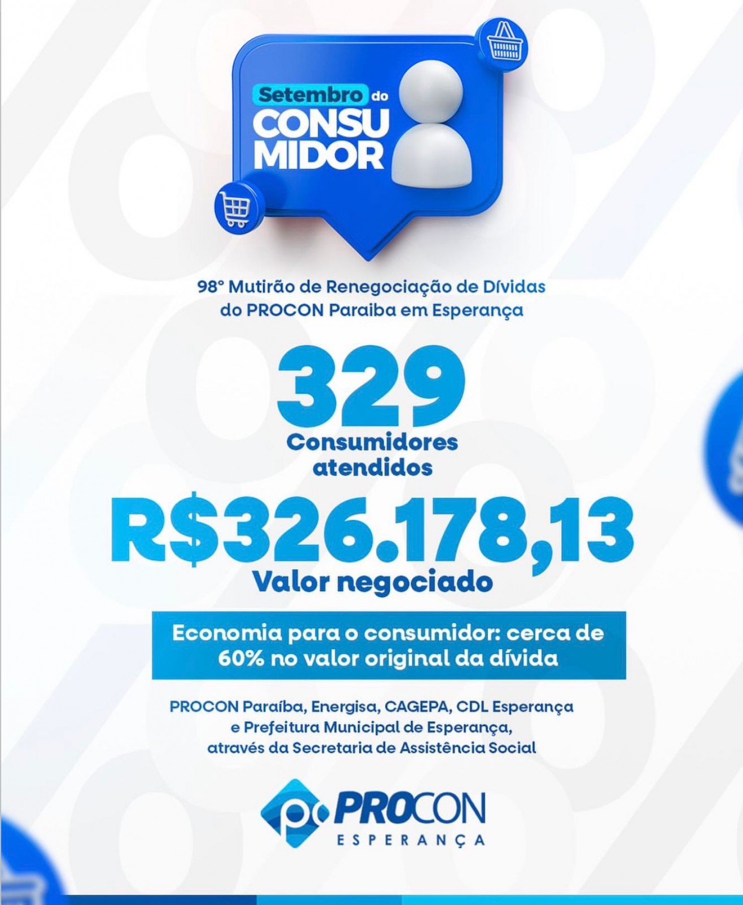 O PROCON Esperança teve a honra de sediar o 98º Mutirão de Renegociação de Dívidas do PROCON Paraíba, promovendo um atendimento próximo, ágil e eficiente à população. O evento registrou mais de 300 atendimentos e possibilitou a renegociação de mais de R$ 320 mil em dívidas, proporcionando alívio financeiro e oportunidades de reorganização econômica para consumidores da nossa cidade.