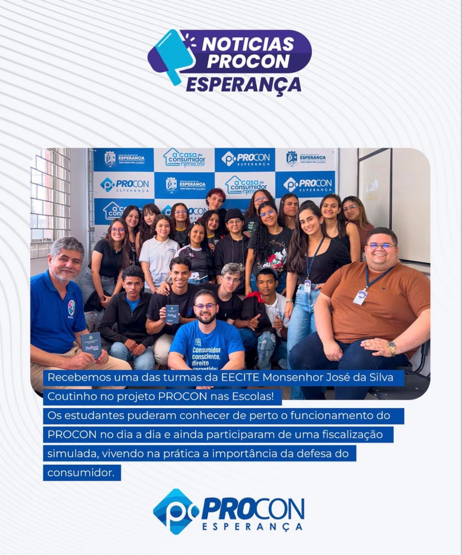 O projeto reforça o compromisso do PROCON Esperança com a formação de cidadãos conscientes, capacitando os alunos para compreenderem melhor o mercado de consumo e a importância de exercerem seus direitos de maneira segura e informada.